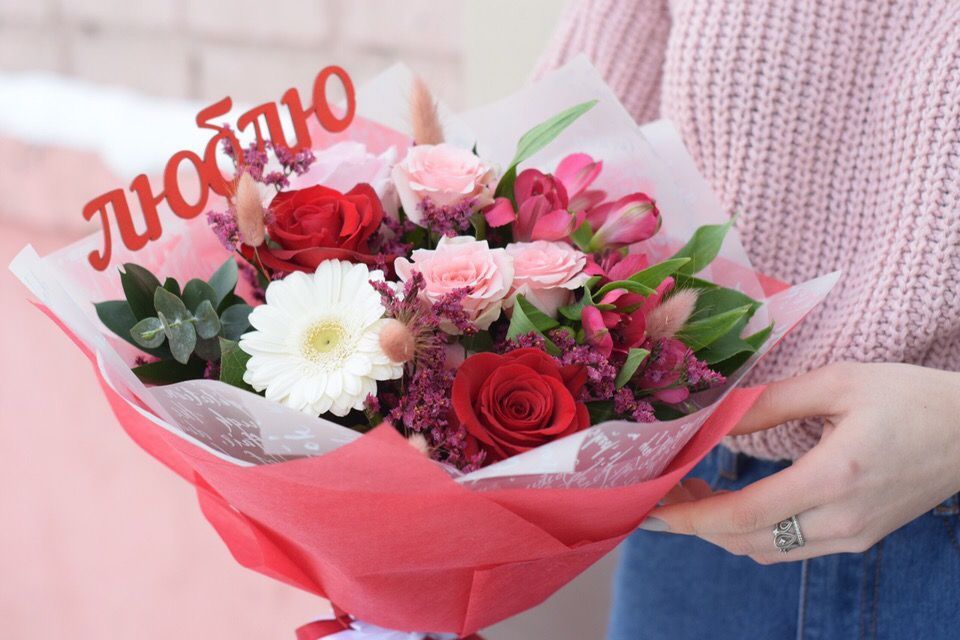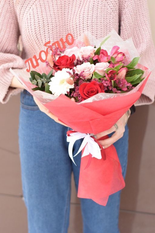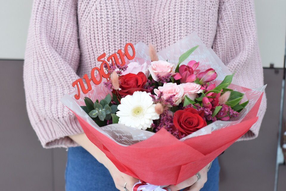 Букет с топпером "Люблю" 2 600 ₽ В корзину В корзину Состав букета: 1 Кустовая роза,2 Розы Фридом,1 Альстромерия,1 Веточка лимониума, 2 салала,5 Лагурус,1 Гербера, роза или другой крупный белый акцент1 Роза розовая, 1 Топпер "Люблю" или "Слюбовью". Состав букета: 1 Кустовая роза,2 Розы Фридом,1 Альстромерия,1 Веточка лимониума, 2 салала,5 Лагурус,1 Гербера, роза или другой крупный белый акцент1 Роза розовая, 1 Топпер "Люблю" или "Слюбовью". Поделиться С этим товаром покупаютКонфеты Раффаэлло 700 ₽В корзину