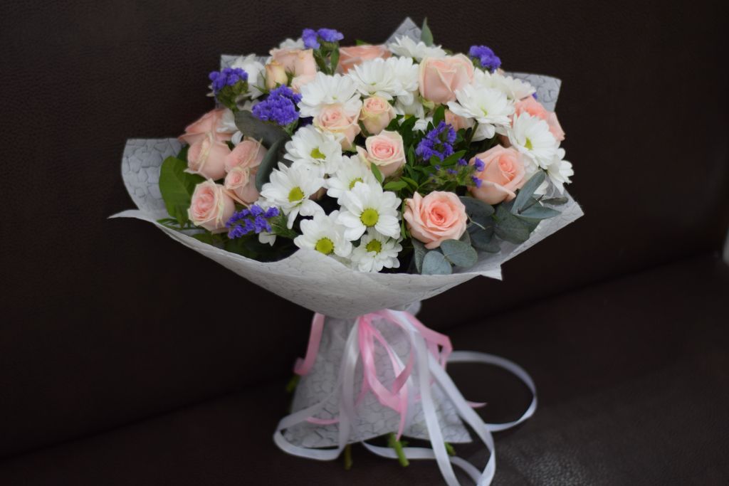 Букет из кустовых роз и хризантемы 3 630 ₽ В корзину В корзину Состав букета: Роза кустовая 3 шт. Хризантема 4 шт. Статица 2 шт. Зелень. Упаковка. Состав букета: Роза кустовая 3 шт. Хризантема 4 шт. Статица 2 шт. Зелень. Упаковка. Поделиться