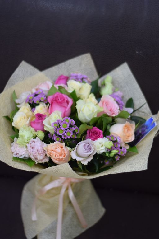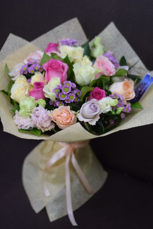 Букет из роз и сантини. 4 200 ₽ В корзину В корзину Состав букета: Сантини 3 шт. Эустома 3 шт. Роза кустовая 3 шт. Роза 5 шт. Зелень. Упаковка. Состав букета: Сантини 3 шт. Эустома 3 шт. Роза кустовая 3 шт. Роза 5 шт. Зелень. Упаковка. Поделиться