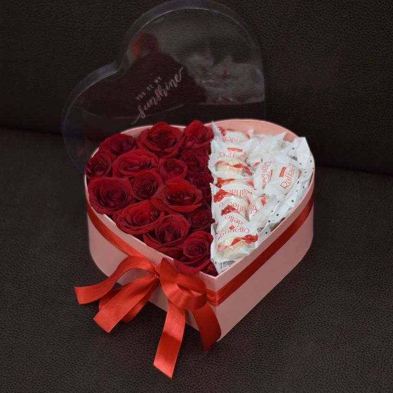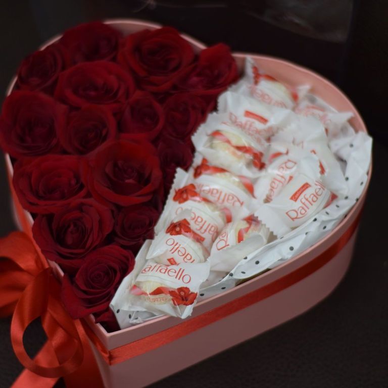 КОРОБКА В ФОРМЕ СЕРДЦА С КРАСНЫМИ РОЗАМИ И РАФАЭЛЛО 5 200 ₽ В корзину В корзину Состав композиции: Бордовые розы 15 шт. Конфеты Коробка Состав композиции: Бордовые розы 15 шт. Конфеты Коробка Поделиться С этим товаром покупаютКонфеты Раффаэлло 700 ₽В корзину