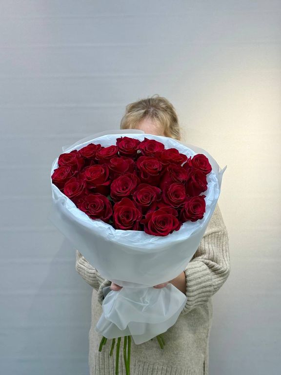 Роскошный букет из 21 эквадорской розы высотой 60 см! Крупные бутоны, безупречное качество и впечатляющая стойкость. Ширина букета 35-40 см создаёт идеальный объём. Идеальный подарок для особого случая, говорящий о самых глубоких чувствах.