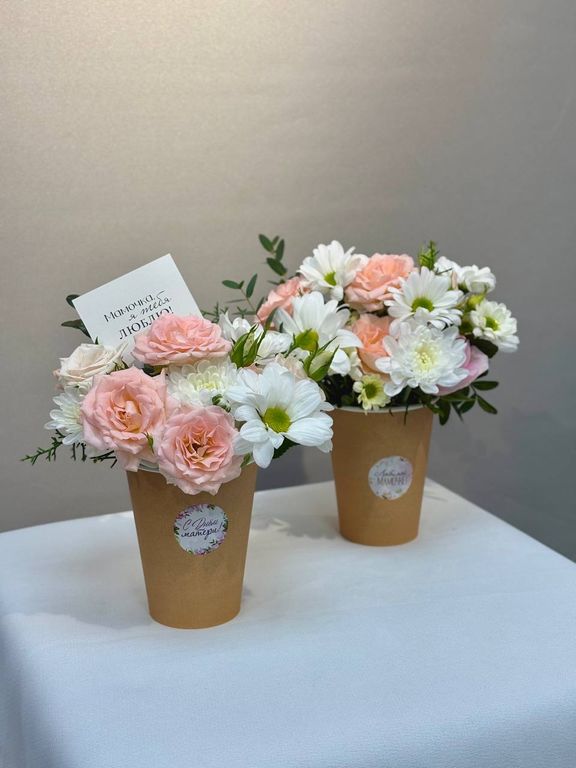 Идеальный знак внимания ко Дню Матери! Эта милая и компактная композиция в стакане – прекрасный способ выразить любовь и заботу. Она станет нежным акцентом на праздничном столе или уютным украшением.