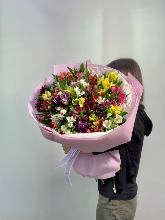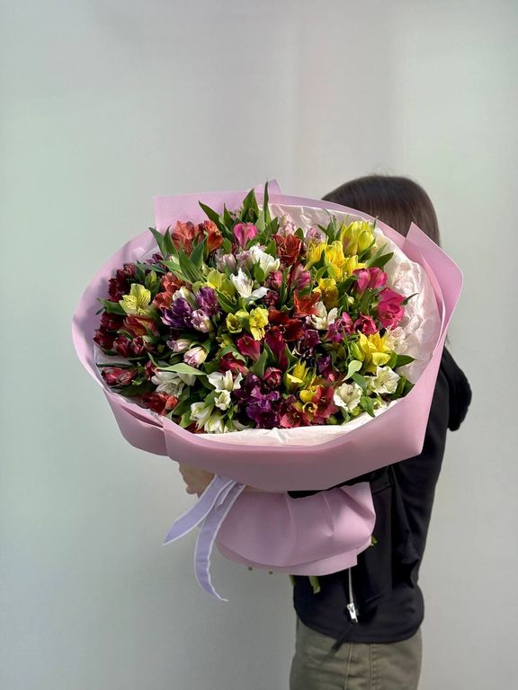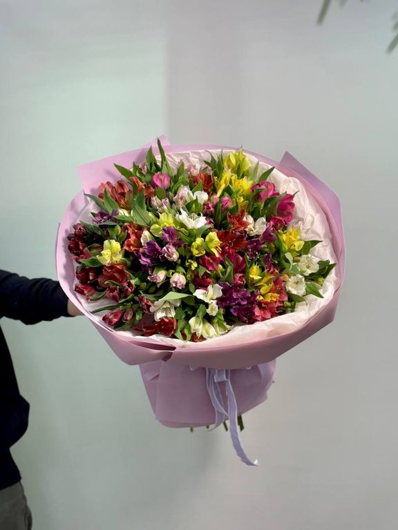 Яркий и жизнерадостный букет из 35 стойких альстромерий – это настоящий взрыв красок и нежности! Эти изысканные цветы создадут праздничное настроение и будут долго радовать своей свежестью и утонченной красотой.