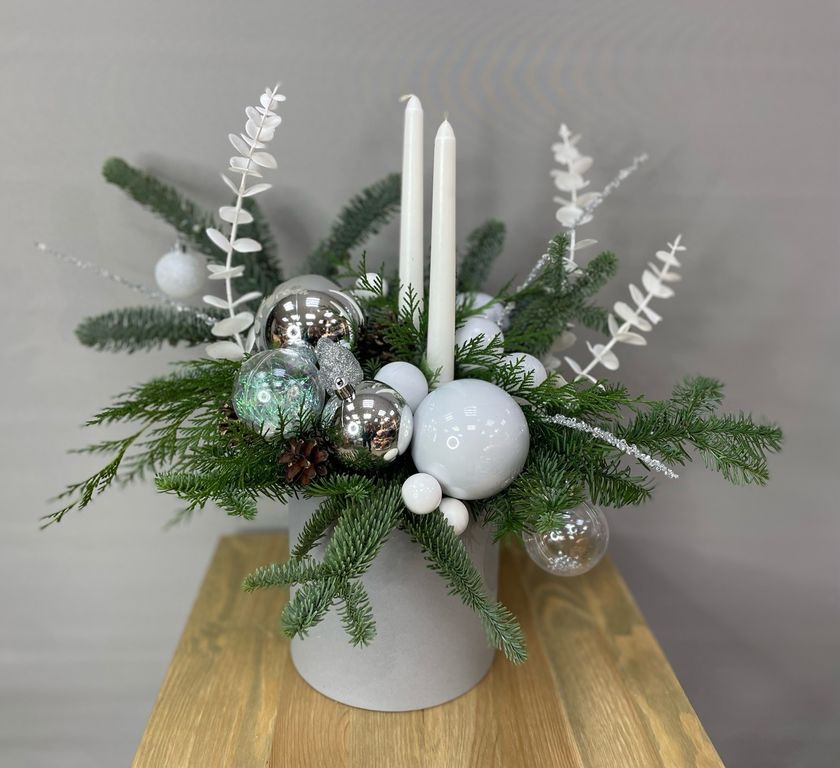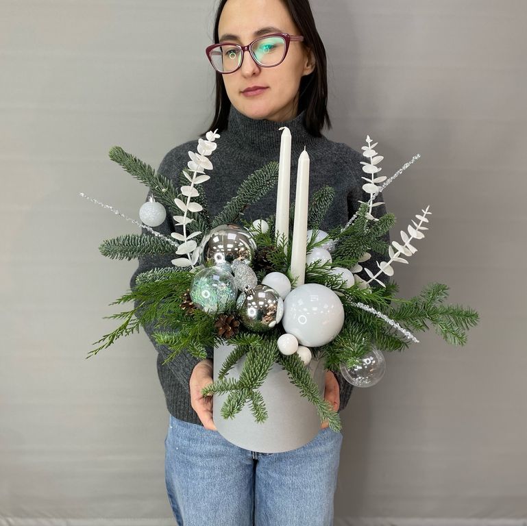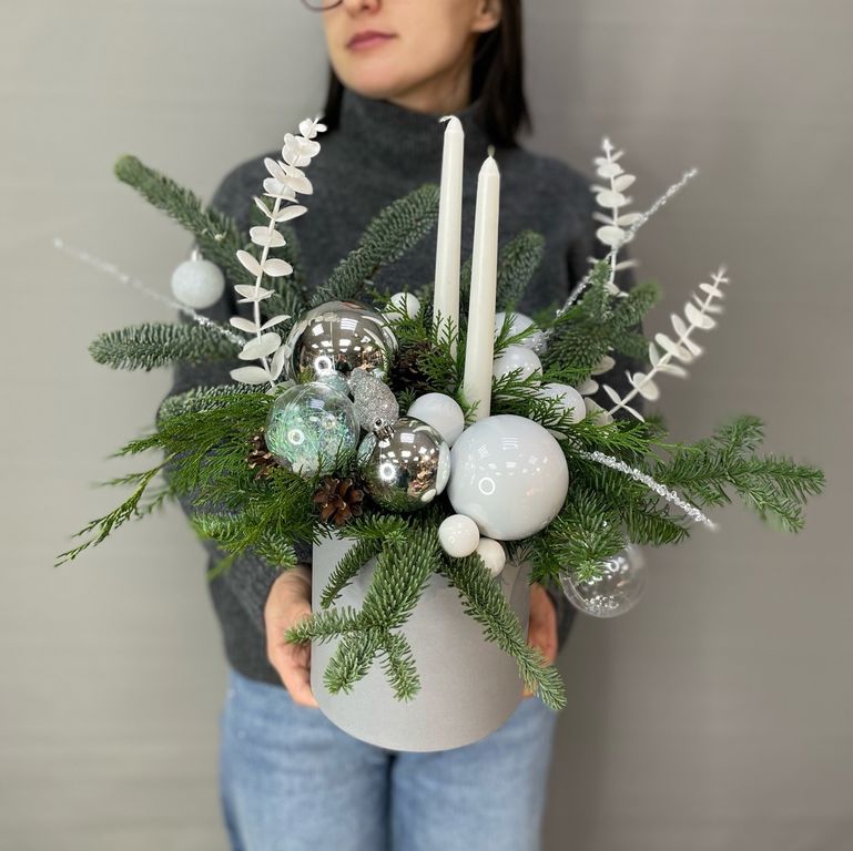 Новогодняя композиция "Ледяное очарование" 3 100 ₽ В корзину В корзину Состав композиции: Нобилис, Новогодний декор, Оазис и коробка. Состав композиции: Нобилис, Новогодний декор, Оазис и коробка. Описание Описание Наполнение композиции может незначительно отличаться. Поделиться С этим товаром покупаютКонфеты Раффаэлло 700 ₽В корзинуШоколадные конфеты Merci 700 ₽В корзинуподарокПарфюм для дома 850 ₽В корзину