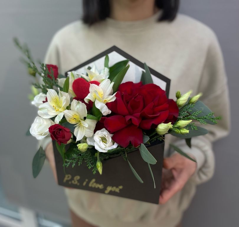 Послание в конверте с сердечком 1 750 ₽ В корзину В корзину Состав композиции: роза 1 шт., альстромерия 1 шт., эустома 1 шт., кустовая роза 1 шт., зелень, оазис, конверт. Состав композиции: роза 1 шт., альстромерия 1 шт., эустома 1 шт., кустовая роза 1 шт., зелень, оазис, конверт. Поделиться С этим товаром покупаютКонфеты Раффаэлло 700 ₽В корзинуШоколадные конфеты Merci 700 ₽В корзину